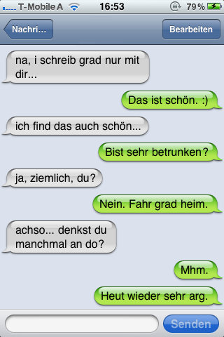 Der SMS-Ton erklingt. „Ups, sorry. Falsche Nummer!“